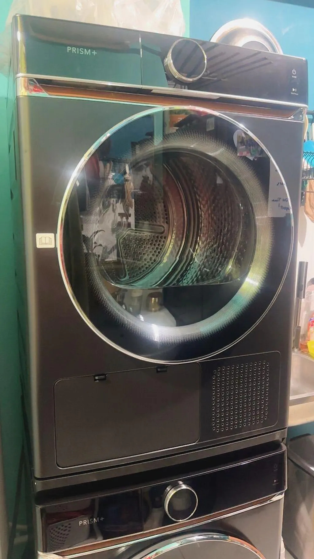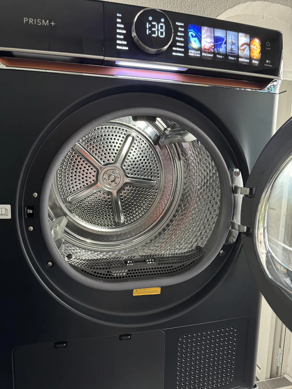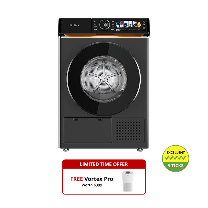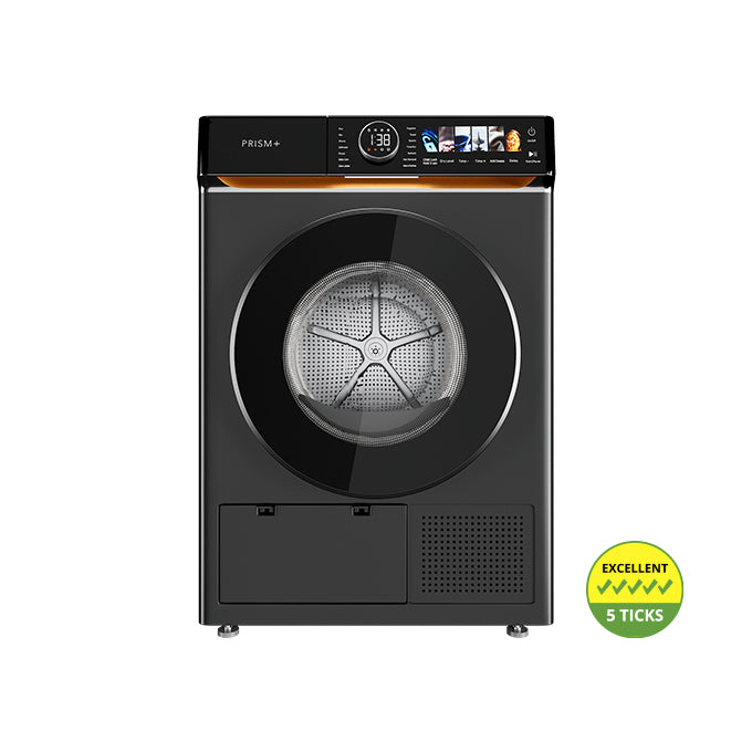 Wrapped in a luxurious leather finish with a sleek touch panel, the Cyclone Dryer offers quiet, energy-efficient performance—featuring advanced AI Smart Dry, shoe-drying, and optional aroma capsules for fresh-scented laundry.