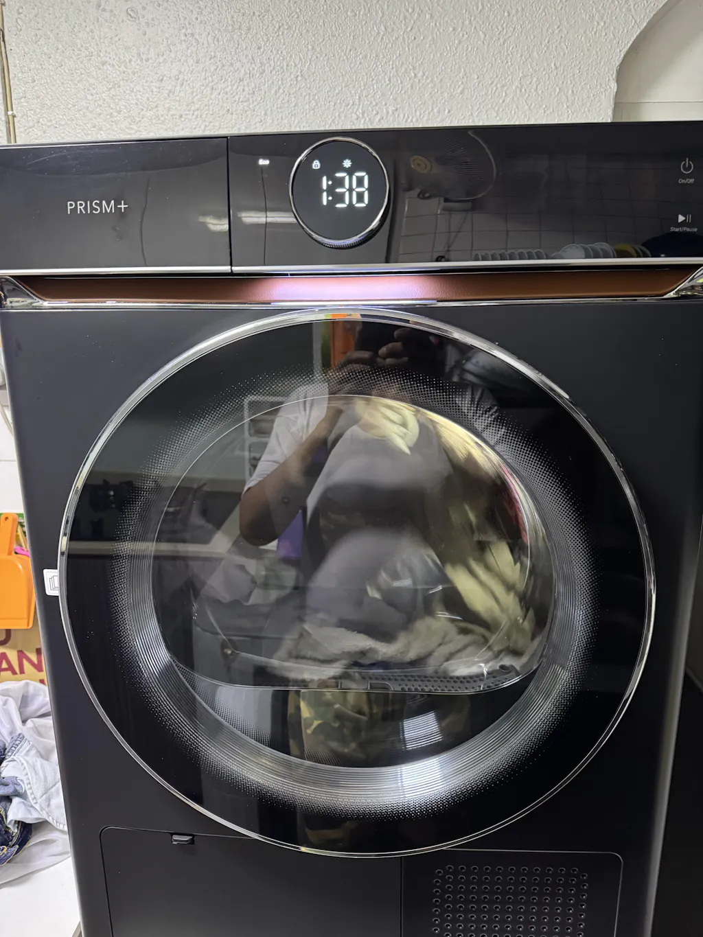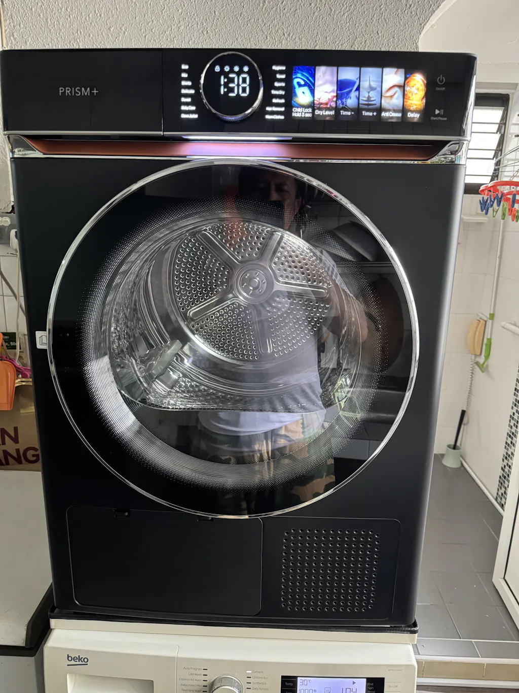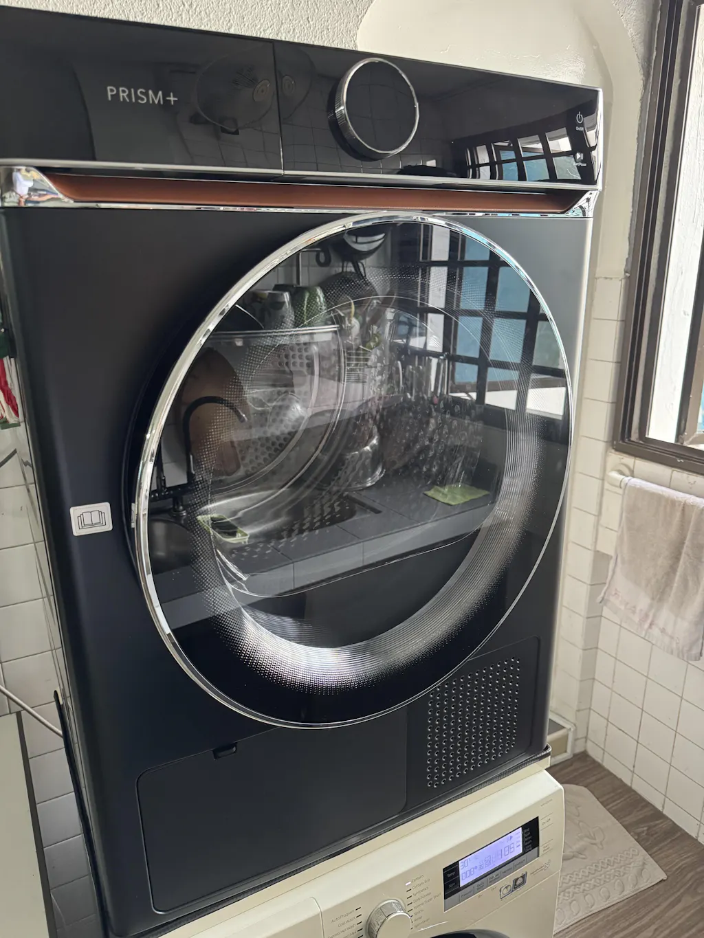 Wrapped in a luxurious leather finish with a sleek touch panel, the Cyclone Dryer offers quiet, energy-efficient performance—featuring advanced AI Smart Dry, shoe-drying, and optional aroma capsules for fresh-scented laundry.