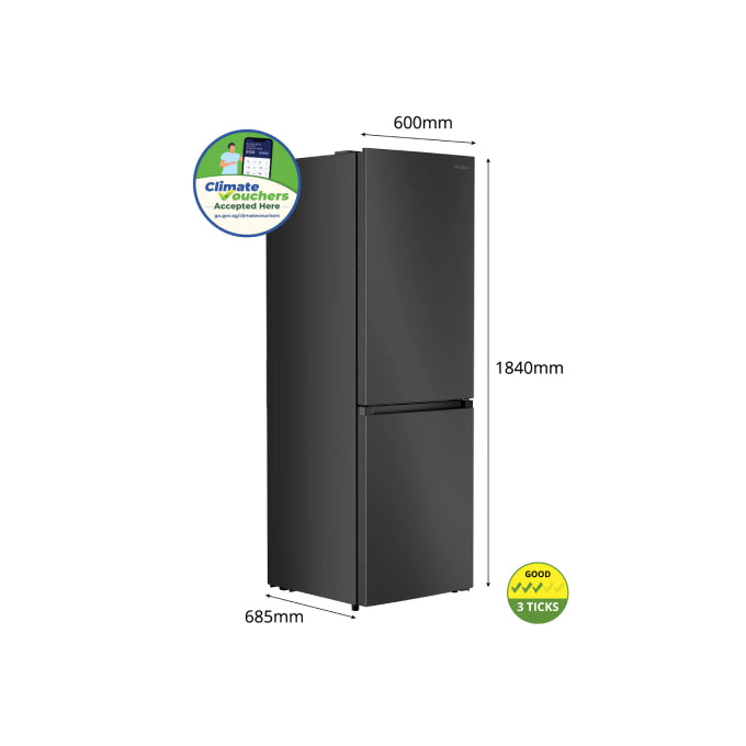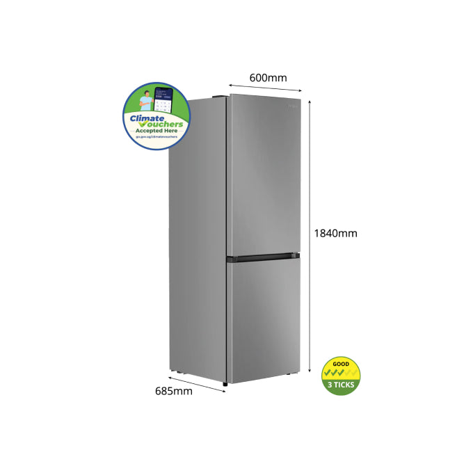 Easily arrange groceries with an ample 326L capacity, offering the perfect balance of fridge and freezer space for daily needs. The top-positioned fridge keeps your most-used items conveniently within reach.