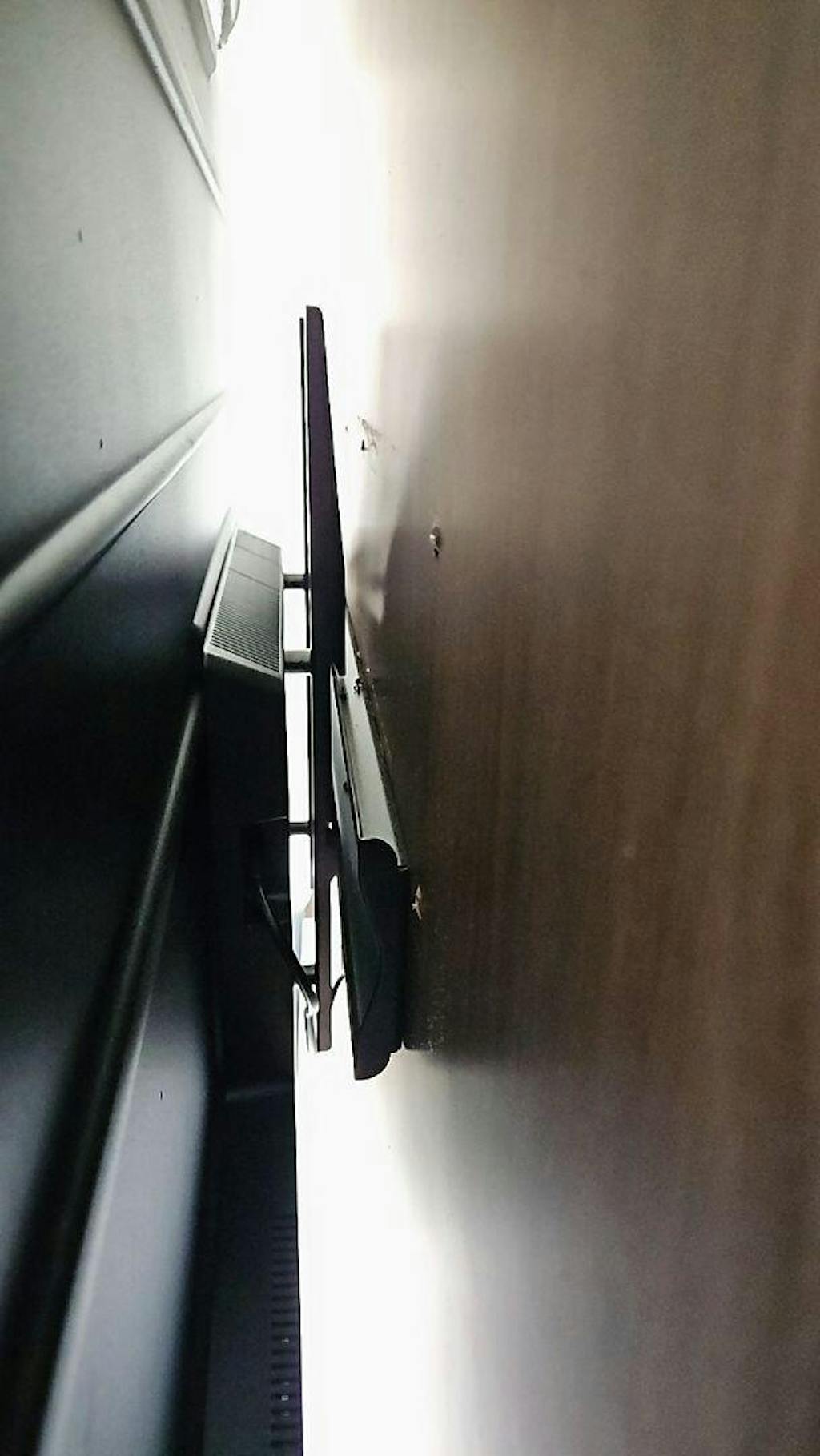 The mounting is good. The team installing the tv was professional in measuring well and making sure everything is centralised and balanced.