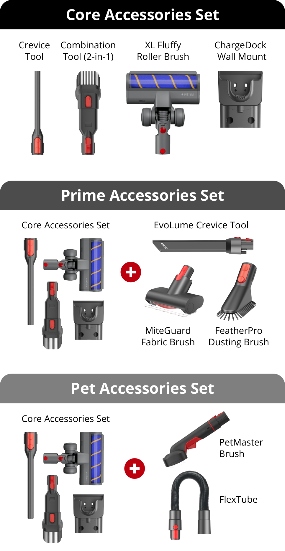 Unleash powerful cleaning with the PRISM+ EvoSonic Ultra, engineered for maximum suction and versatility. With Core, Prime, and Pet accessory sets, it’s built to tackle every cleaning need.