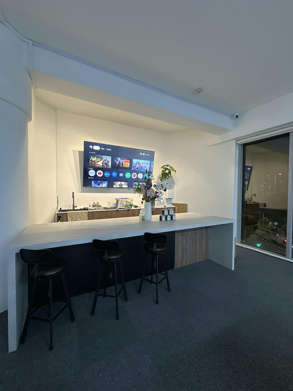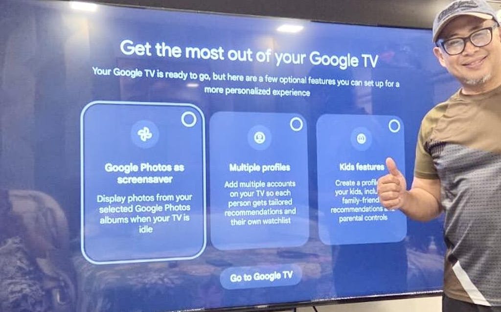 The tilting mount is very practical, allowing us to adjust viewing angles easily and reduce glare. Built-in audio is clear and sufficient for meetings, while Google TV makes casting and content access seamless.