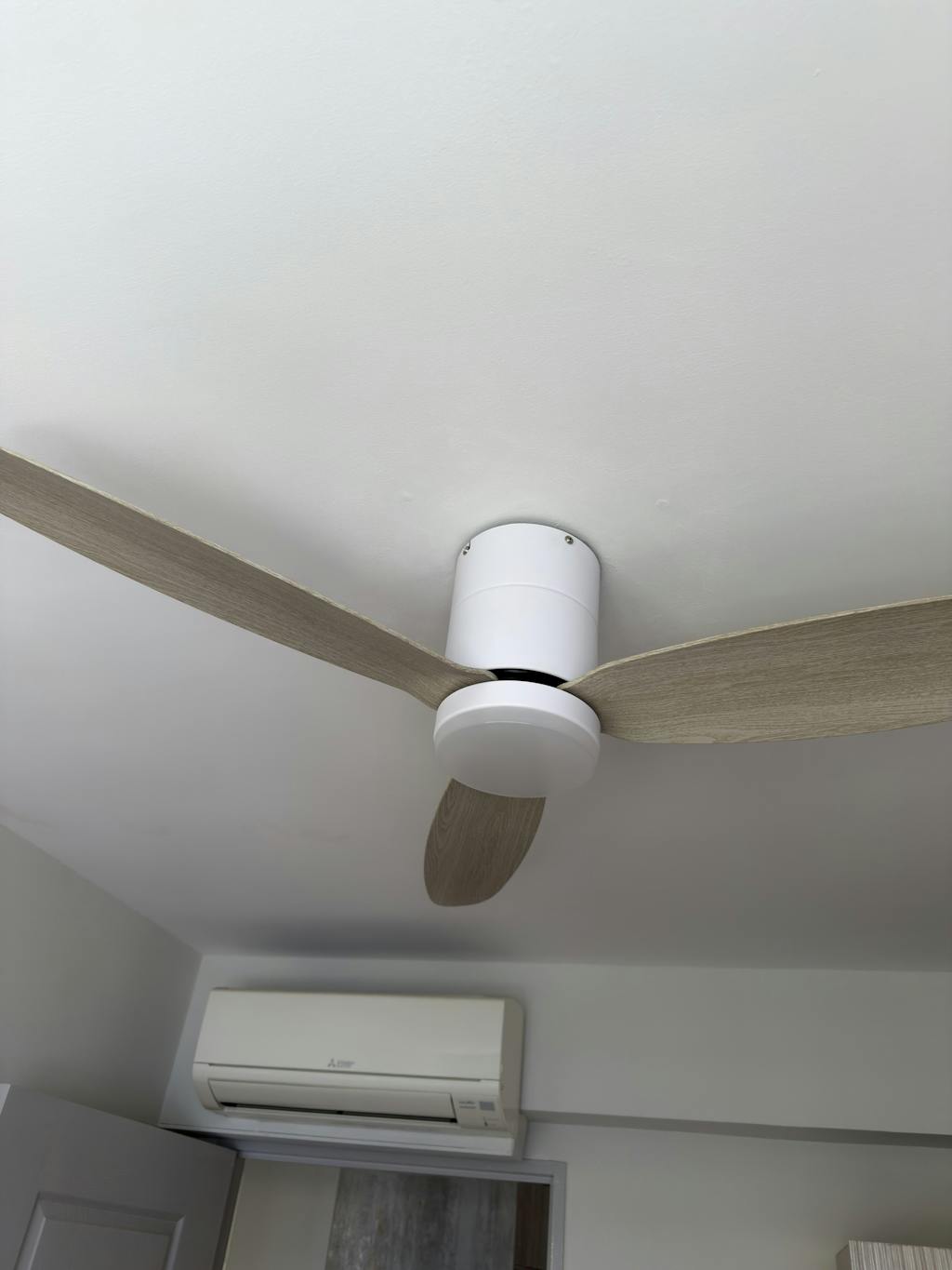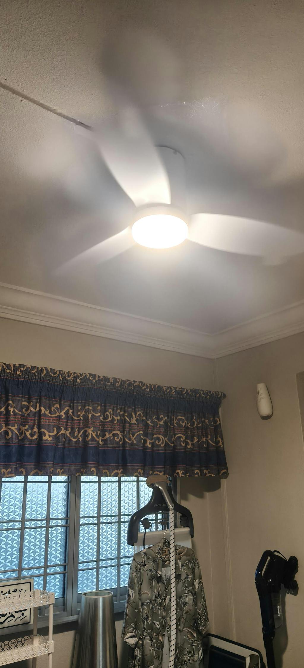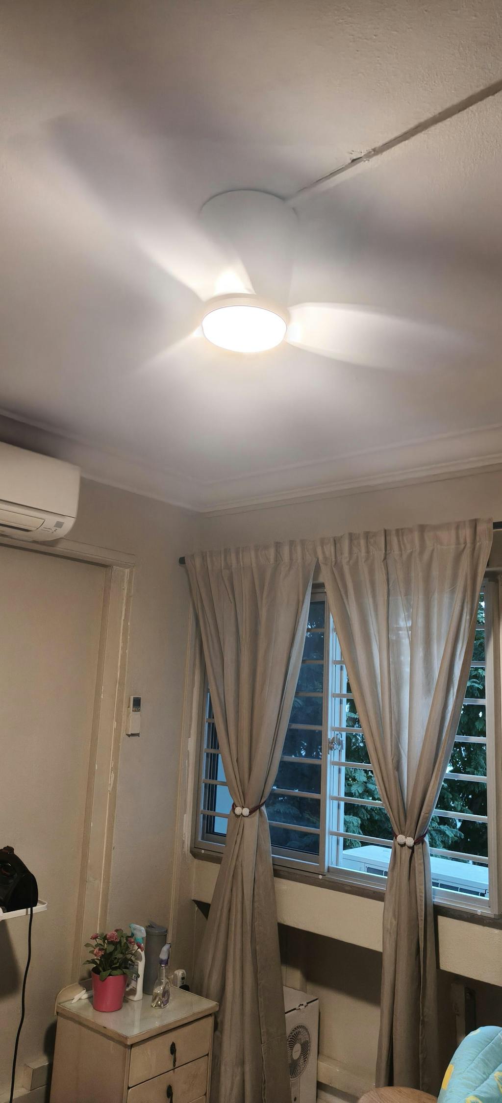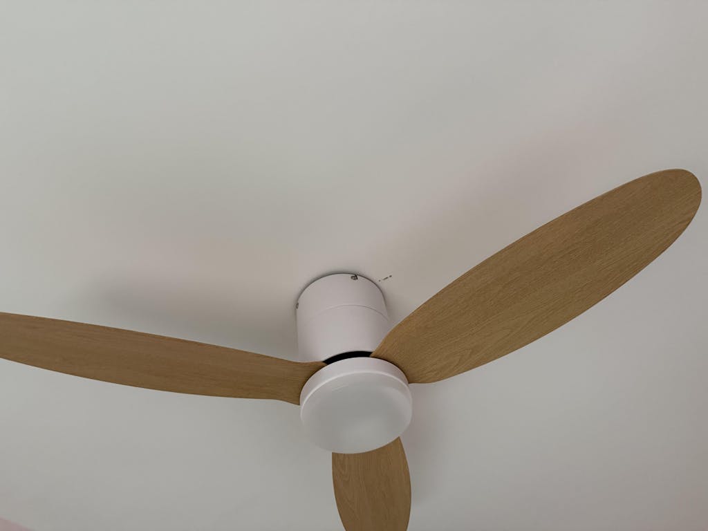 Really impressed with this ceiling fan. The design is sleek and modern, and the matte white finish blends nicely with the room. The motor runs quietly, and the airflow is strong even at lower speeds.