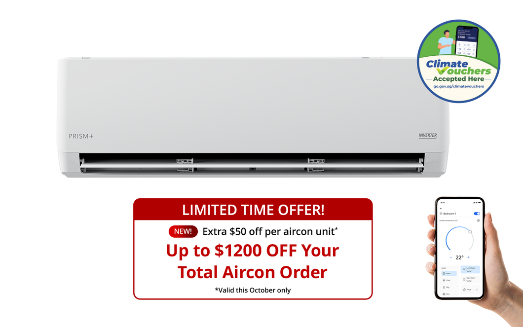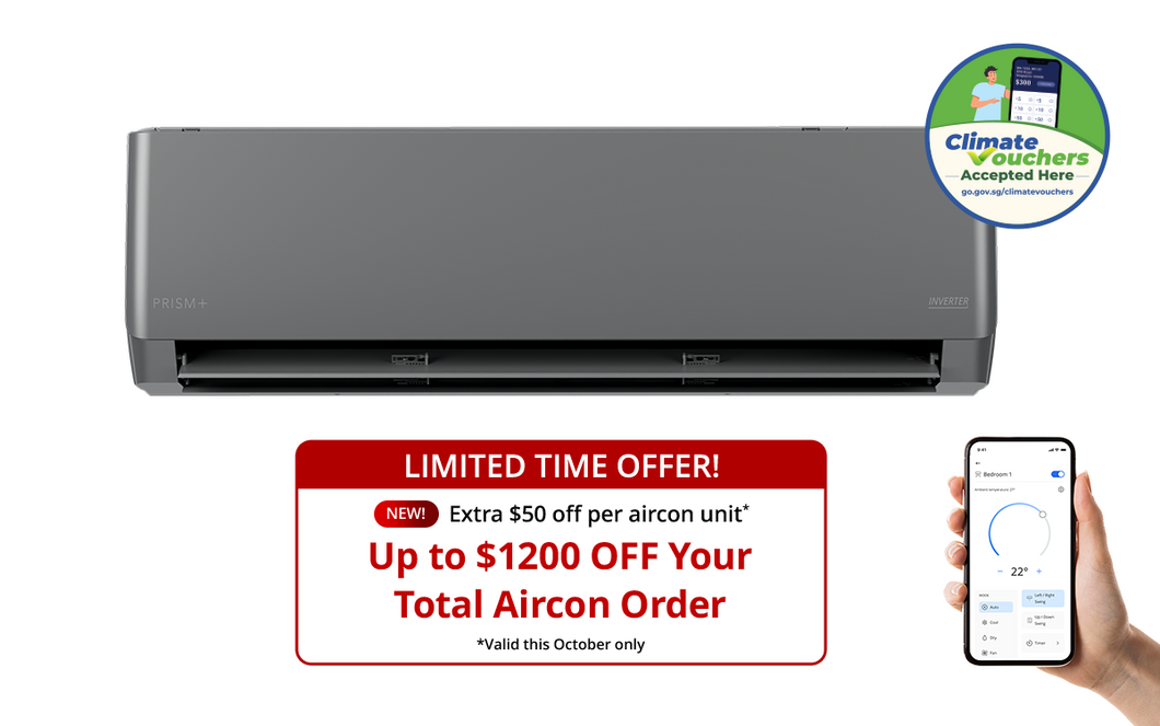 Cool your home effortlessly with our first 5 ticks smart aircon, complete with a dedicated app and inverter technology to help you save more.