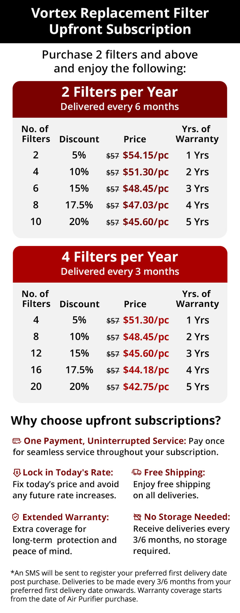 The Vortex Smart Air Purifier was built with Singaporeans in mind. It combats allergies, asthma, sinusitis, and other common respiratory problems prevalent in Singapore by eliminating pollutants that thrive in the heat and humidity of our homes.