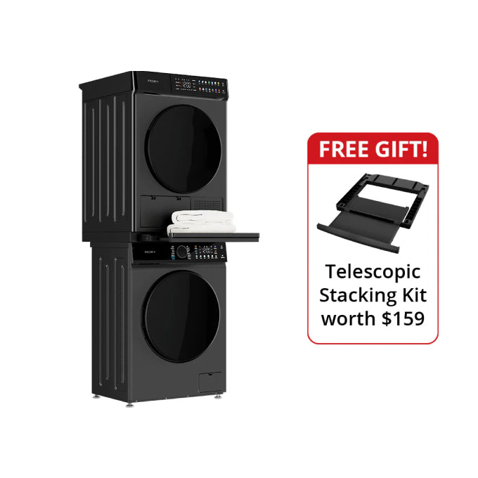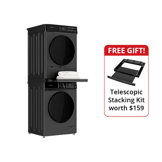Flexible option to stack our Monsoon Dryer and Washer using the add-on stacking kit for installation.